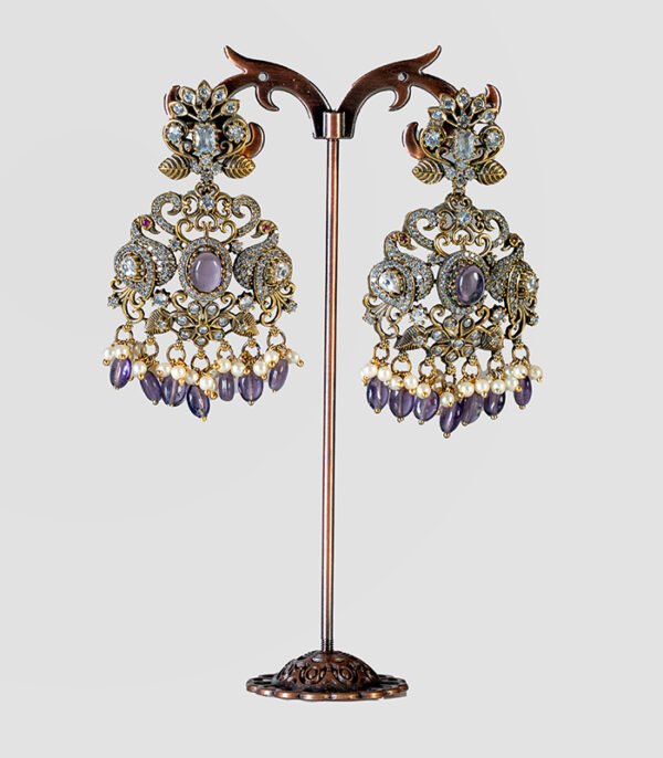 Antique Finish Crystal and Amethyst Stone Temple Set