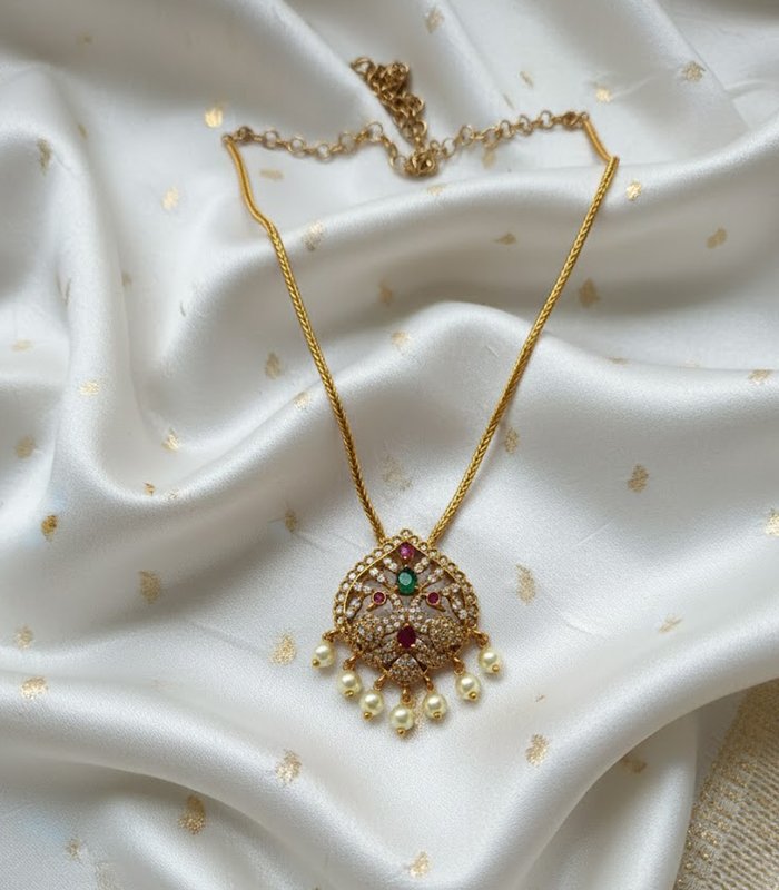 Elevate your ethnic charm with this exquisite antique gold-plated necklace, featuring intricate craftsmanship adorned with sparkling stones and elegant pearl drops. Perfect for weddings, festive occasions, and traditional attire, this necklace adds a timeless touch of luxury and grace to your look.