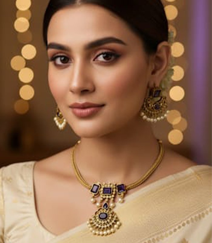 The set includes a pair of coordinating Earrings that mirror the round, pearl-dropped pendant design. The earrings feature comfortable post closures. The blend of geometric square accents and the soft, traditional circular pendants gives this set a unique and sophisticated appeal. This jewelry set is perfect for receptions, formal dinners, or any event where you wish to make an elegant, statement rooted in vintage glamour.