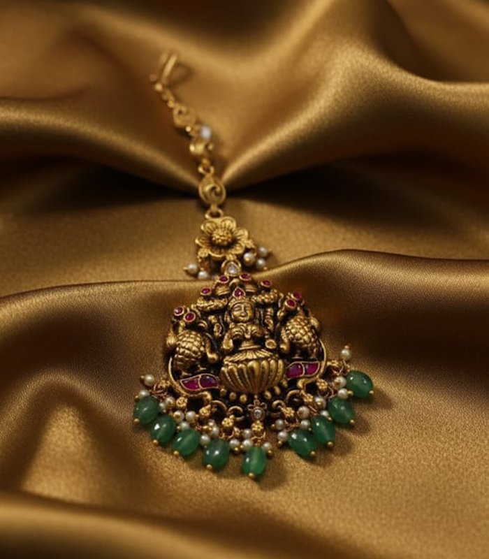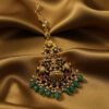 Antique Gold-Tone Lakshmi Maang Tikka with Green Bead Drops