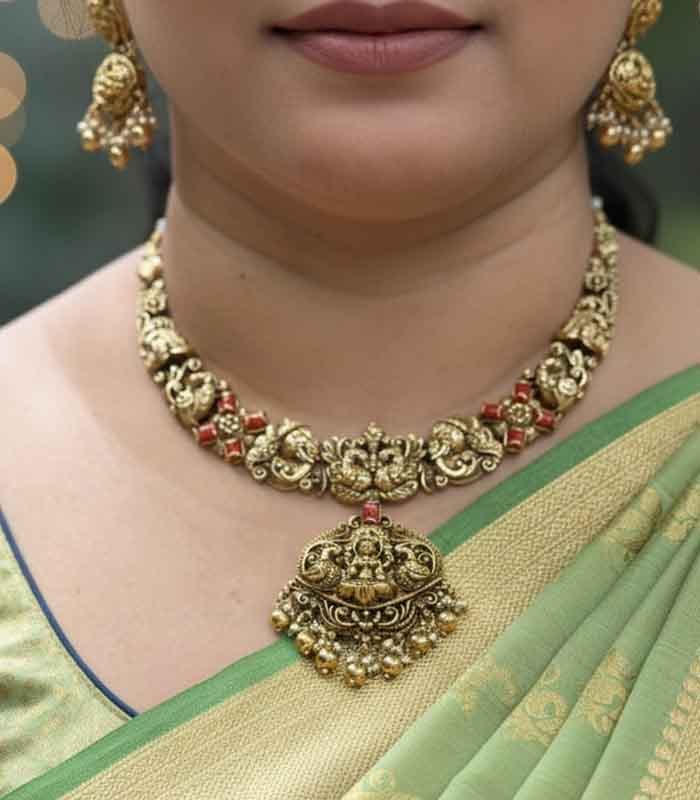 Make an unforgettable statement with this truly magnificent Antique Temple Jewelry Choker Set. This piece embodies the height of traditional South Indian craftsmanship, perfect for the bride or anyone commanding the most formal of events.