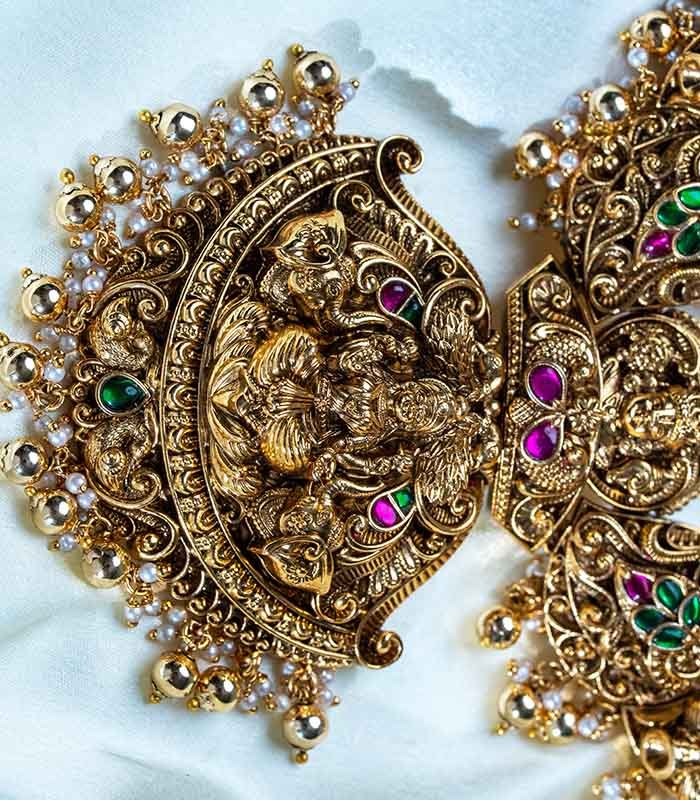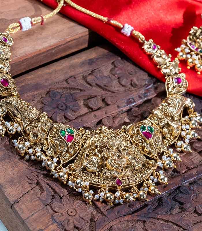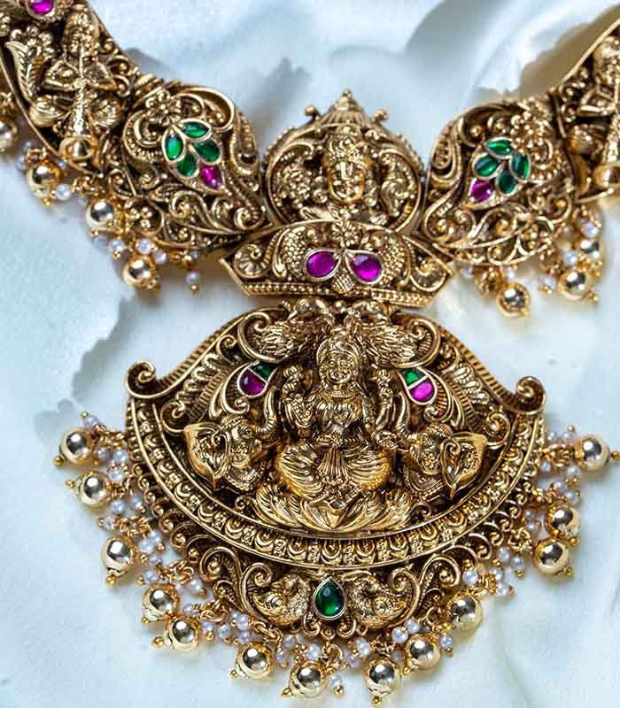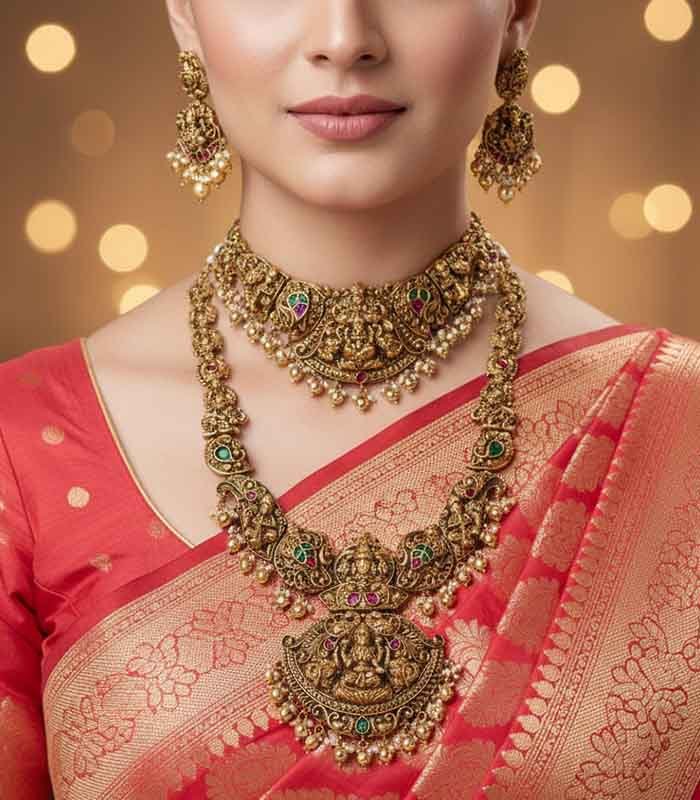 Antique Temple Lakshmi Long and Short neckpiece with earrings.