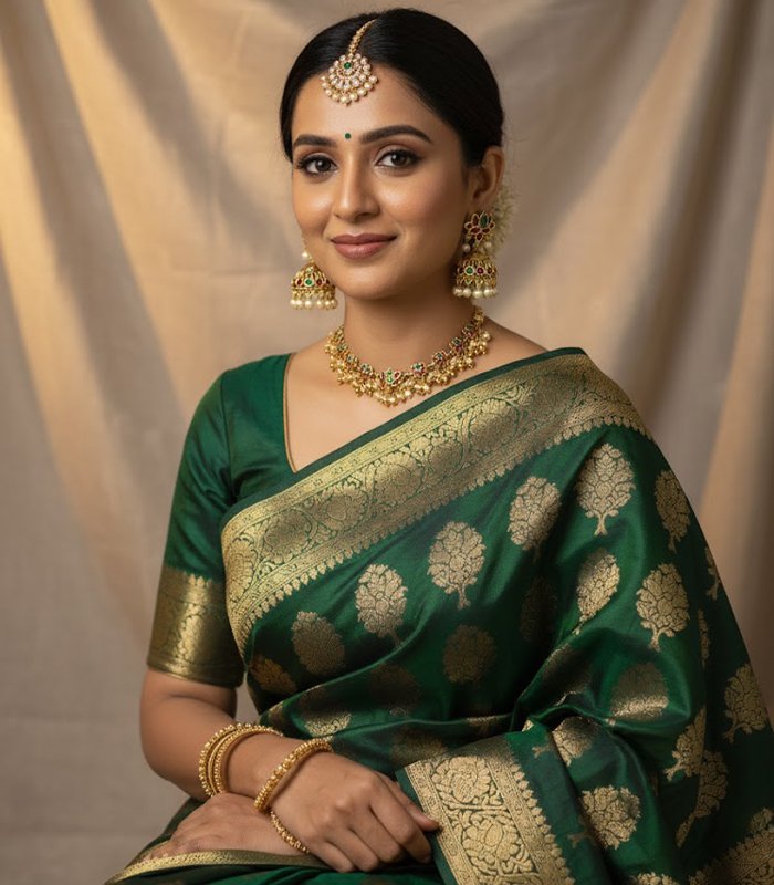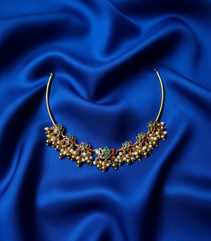 Adorn yourself with royal elegance in this stunning bridal Polki necklace. Embellished with uncut Kundan stones, pearls, and green-red accents, it captures timeless grace. Perfect for weddings, festive occasions, and traditional celebrations, this choker-style necklace pairs beautifully with silk sarees or lehengas for a regal bridal look.