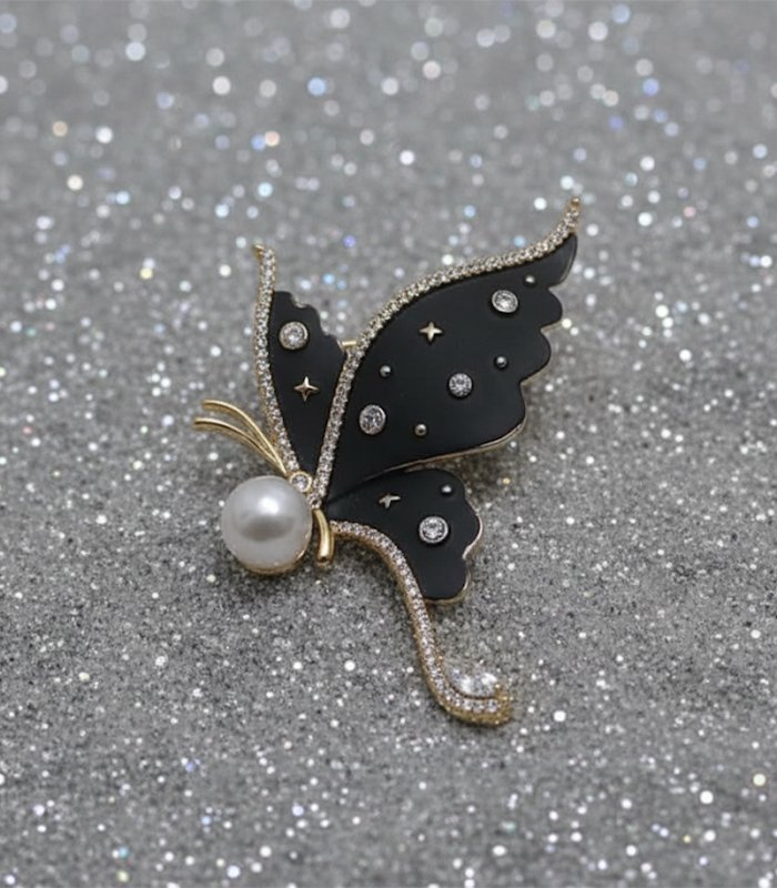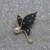 Celestial Black Enamel Butterfly Brooch with Pearl