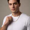 The chain’s structure is instantly recognizable by its intricate Rope link pattern, which consists of several metal strands carefully twisted together to form a substantial, spiraled braid. This construction gives the chain an impressive depth and ensures that the bright silver finish catches the light from every angle, resulting in a continuous, scintillating shine.