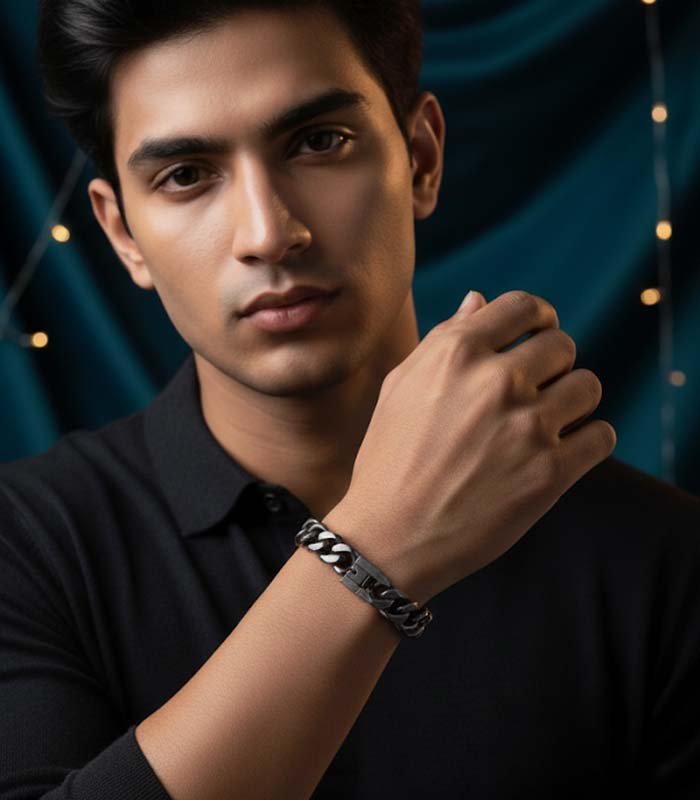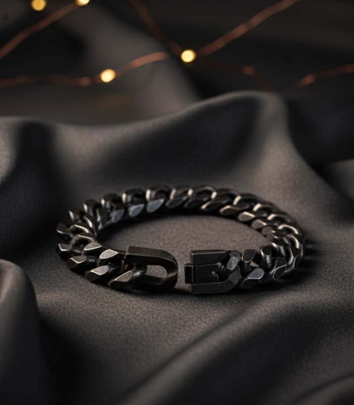 Dark-toned Gun metal chain bracelet with Box Clasp. Secure and sturdy, suitable for everyday wear.