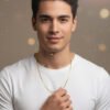 The luxurious setting, paired with the soft, warm bokeh lighting in the background, emphasizes the chain’s premium quality and fine craftsmanship. It is secured with a simple, refined clasp visible at the top. This minimalist chain is an ideal foundation for showcasing a cherished pendant, or it can be worn alone for a clean, sophisticated, and understated look.