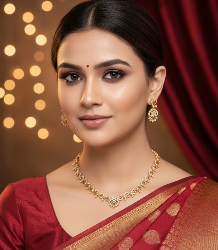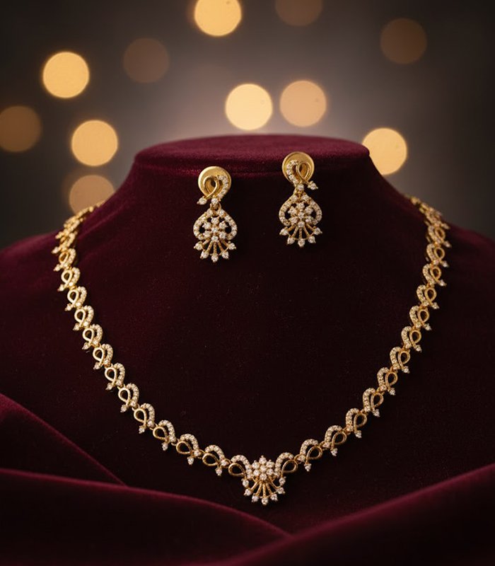 Gold-plated diamond necklace set with matching earrings — perfect for weddings and festive occasions, adding elegance and sparkle to your style.