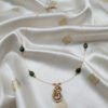 Elegant Gold-Plated Pendant Necklace with Pearl & Green Beads