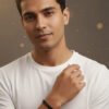 Each link is finished to a mirror-like shine, beautifully reflecting light, especially against the rich, dark velvet background. The polished surface ensures a sharp, modern appearance, making it an ideal accessory for both the boardroom and weekend outings. Its classic watch-band style offers exceptional durability and a secure fit. The Executive Link Bracelet is more than just jewelry; it’s a statement of confidence and unwavering style, perfect for the man who appreciates precision, quality, and timeless design. This piece makes an excellent gift or a distinguished addition to any personal collection.