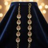 Adorn yourself with this elegant gold-plated Ear Maati featuring alternating ruby and white stones in a floral-inspired design. Each link is intricately crafted to reflect traditional beauty and sophistication, perfect for weddings, festivals, and cultural celebrations. Pair it with matching jewelry for a complete regal look.