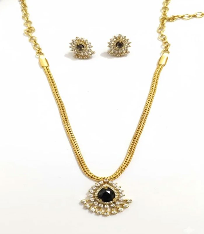 The set is completed by a pair of coordinating Stud Earrings that mirror the black stone and pave-set white stone design in a small, elegant cluster. This set is perfect for making a modern yet opulent statement at evening events, cocktail parties, or when pairing with contemporary Western or fusion Indian attire.