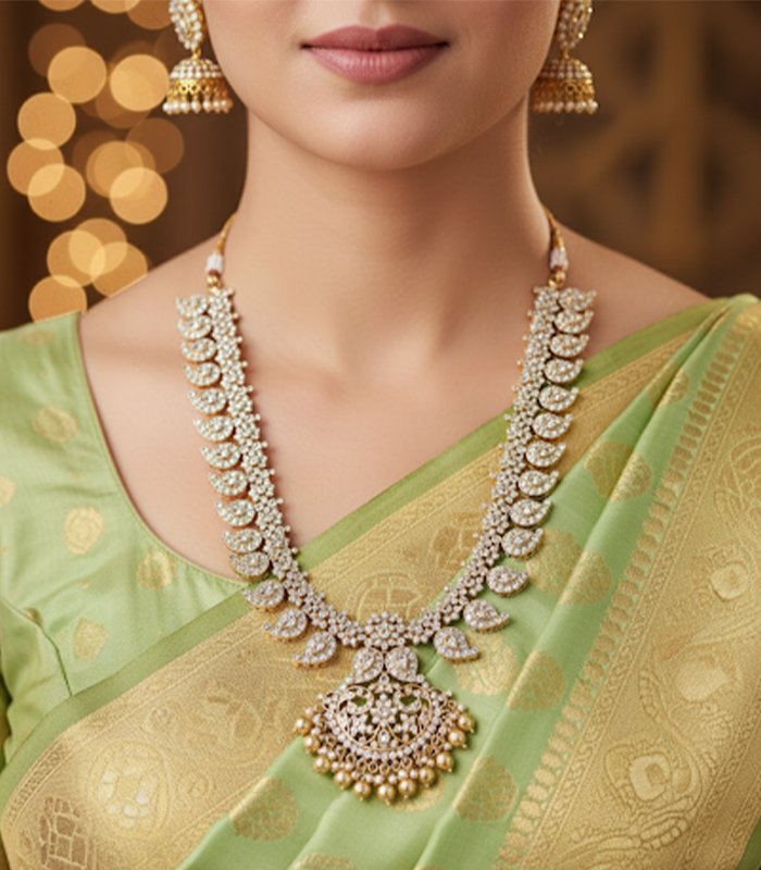 This statement choker is a perfect choice for bridal ceremonies, grand festive occasions, or when paired with heavy silk sarees or lehengas. Its intricate stone work and rich drop detailing ensure an opulent, traditional look.