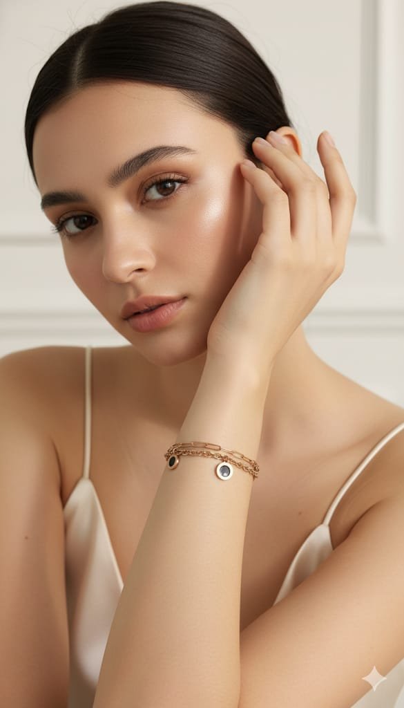 Whether paired with western outfits, ethnic wear, or casual looks, the Golden Orbit Dual Chain Bracelet adds sophistication without overpowering your style. It also makes a thoughtful gift for birthdays, anniversaries, celebrations, or just to surprise someone special. This bracelet is not just an accessory—it’s a reflection of elegance, confidence, and timeless fashion wrapped into one beautiful piece.