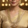 This statement necklace is a stunning display of traditional Indian craftsmanship, perfect for bridal wear, grand festive occasions, or when seeking an opulent, royal look that commands attention.