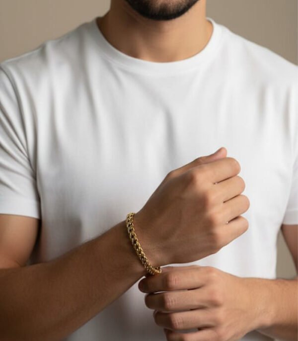 Discover timeless sophistication with our Men’s Premium Gold-Tone Braided Chain Bracelet—crafted for the modern man who values elegance, strength, and style. Designed with a bold braided pattern, this bracelet brings together durability and refined craftsmanship, making it an essential accessory for everyday wear or special occasions.
