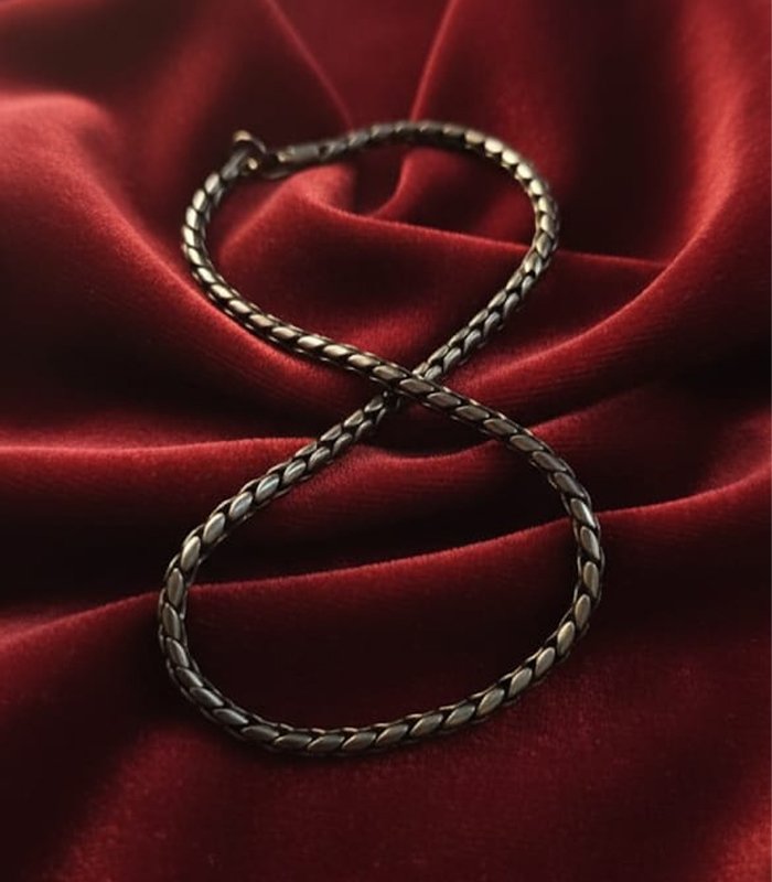 Its interlocked chain design creates a smooth, flexible structure that sits comfortably on the wrist, offering a premium feel without compromising durability. The bracelet’s antique-inspired finish adds depth and personality, making it a standout piece whether worn daily or on special occasions. It pairs seamlessly with casual looks, office wear, or evening outfits, adding a subtle yet striking touch of sophistication.
