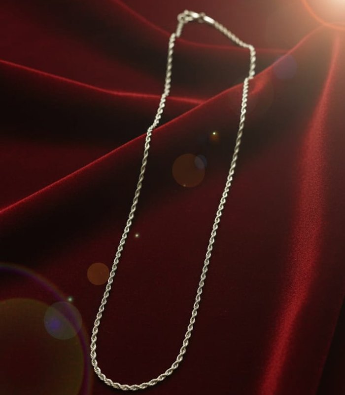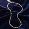 The composition is beautifully accented by the soft, warm bokeh lighting in the background, suggesting a festive or high-end presentation. Secured with a delicate clasp, this chain is the perfect base layer for stacking with chunkier necklaces, or worn solo for a refined and subtle sparkle that complements any neckline. It is the epitome of understated luxury.