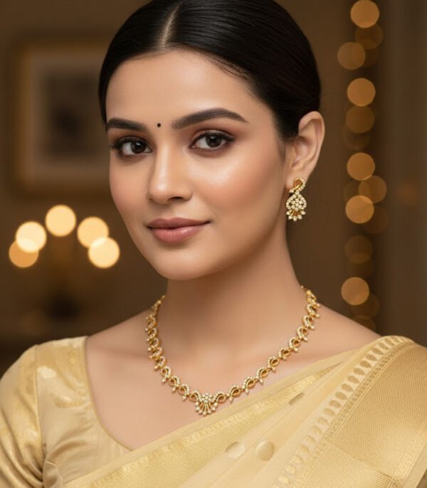 Ideal for weddings, receptions, engagements, festivals, and grand celebrations, this set is also a thoughtful gift for anniversaries, birthdays, and special milestones. The Regal Infinity Sparkle Necklace Set is more than just jewelry—it is a timeless statement of grace, confidence, and everlasting elegance that enhances every moment you wear it.