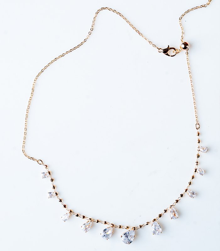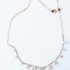 This charming necklace is a delicate and modern piece with a sophisticated rose gold-tone finish. The chain itself is fine and subtle, designed in a station style, where the clear, brilliant-cut stones are set directly into the chain at regular intervals.