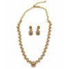 The Royal Blossom Diamond Grace Necklace Set is a stunning expression of timeless beauty and refined craftsmanship. Designed with a graceful series of leaf-inspired motifs, this necklace showcases intricate detailing that sparkles with every movement. Its luxurious gold-tone finish combined with dazzling stone accents creates a radiant effect that instantly elevates any look. The matching earrings perfectly mirror the necklace design, completing the set with flawless harmony.