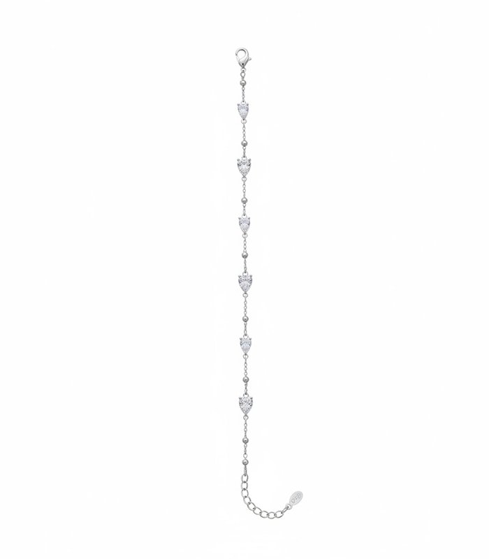Elegant silver bracelet featuring seven brilliant, cat-face shaped cubic zirconia stones. Adjustable chain for a purrfect fit.