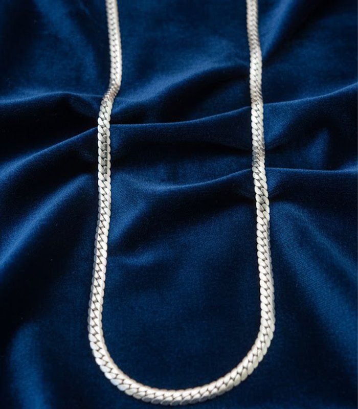 This impressive piece is the Sterling Finish Flat Weave Chain, a substantial necklace that makes a definitive style statement.