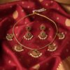 Elevate your ethnic look with this stunning traditional necklace set featuring ruby and emerald stones surrounded by elegant pearl detailing. The handcrafted gold-plated finish adds a royal charm, making it a perfect choice for festive occasions, weddings, and cultural events. Pair it with your favorite saree or lehenga for a timeless, graceful appearance.
